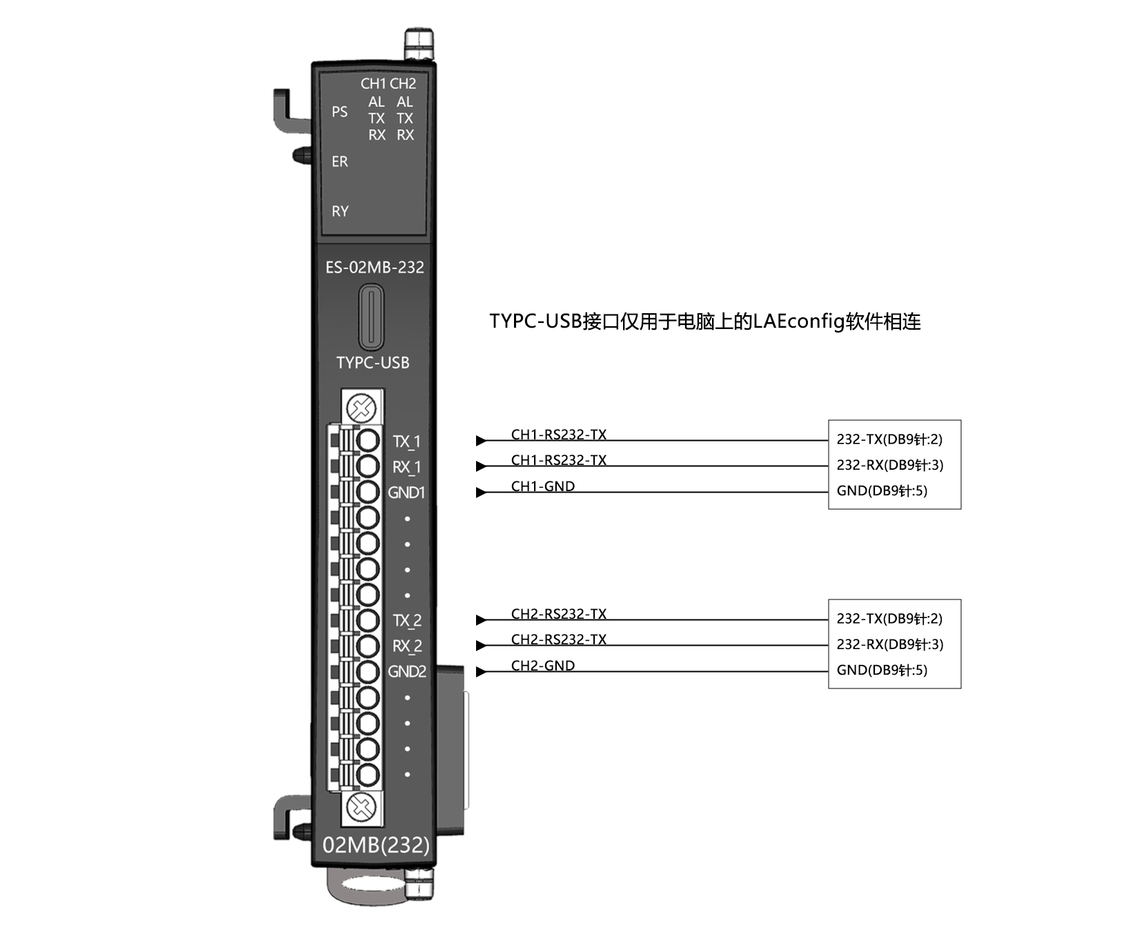 通道類型:RS232(全雙工)