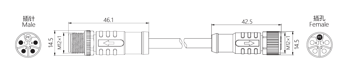 規(guī)格描述:M12-M12,直型針-直型孔,L-Code