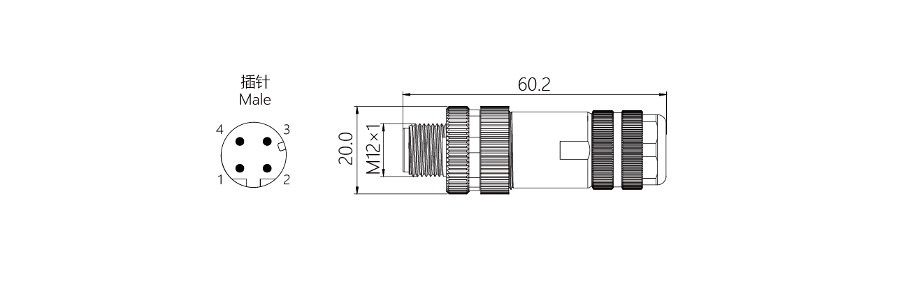 防護等級:IP67(插好并擰緊后) M12